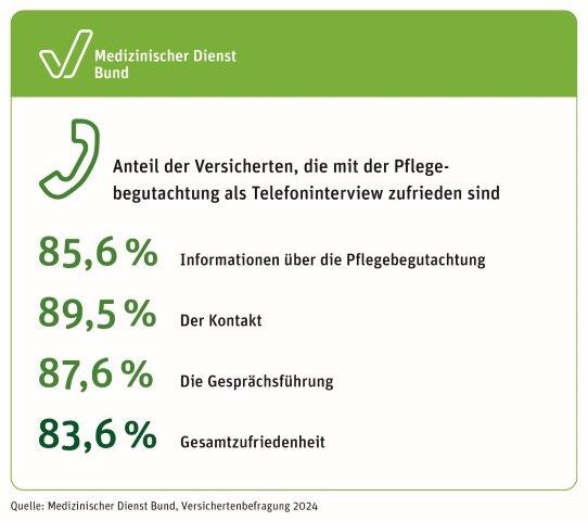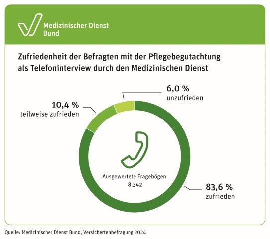 85,6 Prozent der Personen, bei denen die Begutachtung durch ein strukturiertes Telefoninterview erfolgte, zeigten sich hier zufrieden. |